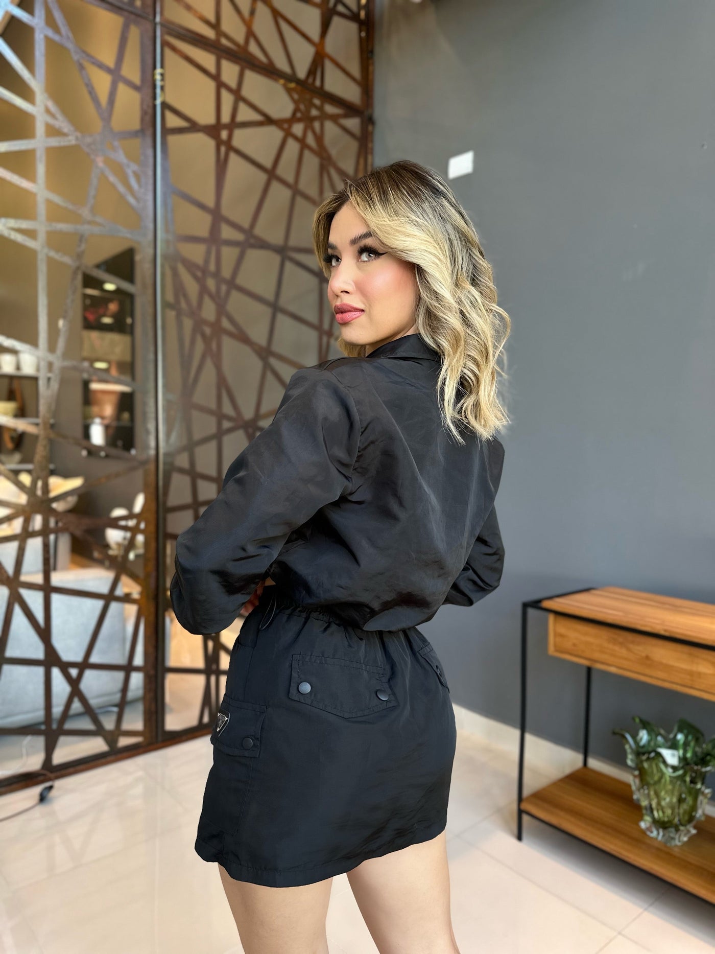 Conjunto Short Saia e Jaqueta - PP / Preto