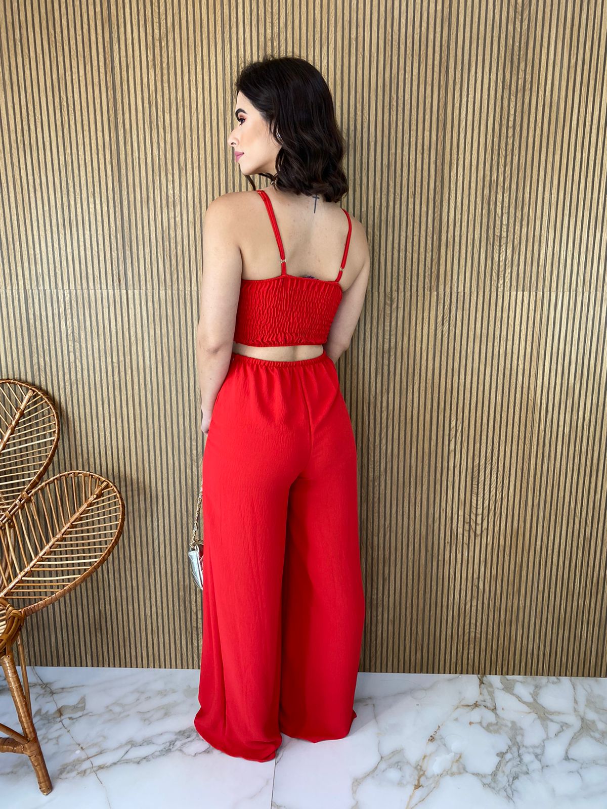 Macacão Feminino com Bojo Alça Regulável com Aberturas Vermelho